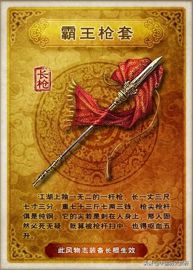 西楚王项羽霸王枪十分罕见,威力巨大,非常锋利,点到必死,一般人是拿不起的,